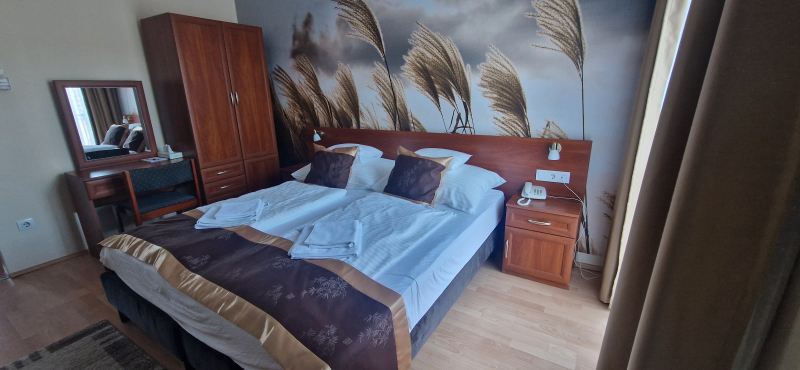 Felszereltség: -1 db ágy -Mini hűtő -Aloé Vera ágynemű -TV/telefon -Fűrdőszoba A szobák a. Elfoglalása d.u. 15.00 tól , b. Elhagyása d.e. 10.00 ig. Reggeli 08.00 -10,00. Egységméert: 13 m2 Fürdőszoba: <= 5 m2 Szállod...