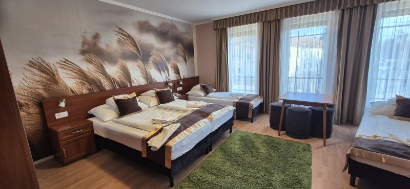 Felszereltség: Párok illetve + 1 fővel érkezők számára ideális, tágas, minden igényt kielégítő szoba. -2 db ágy (1 db szóló 1 db franciaágyas) -Mini hűtő -Aloé Vera ágynemű -TV/telefon -Fűrdőszoba A szobák a. Elfoglal...